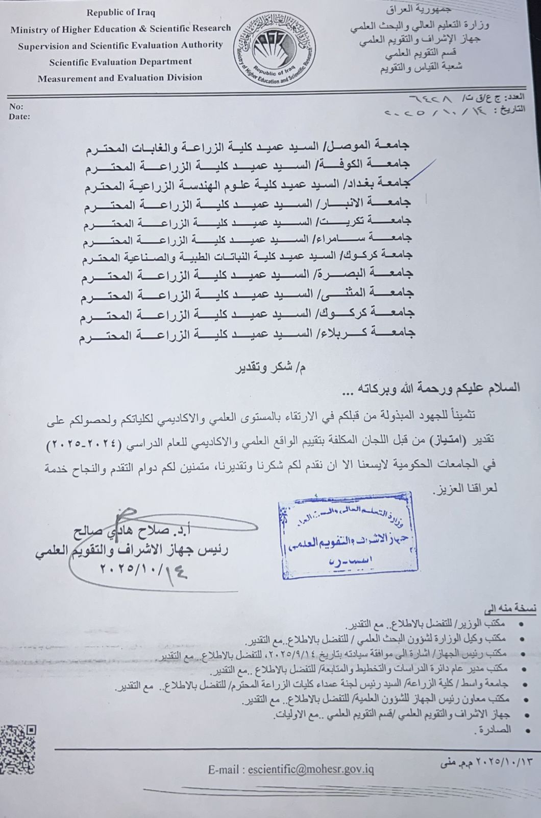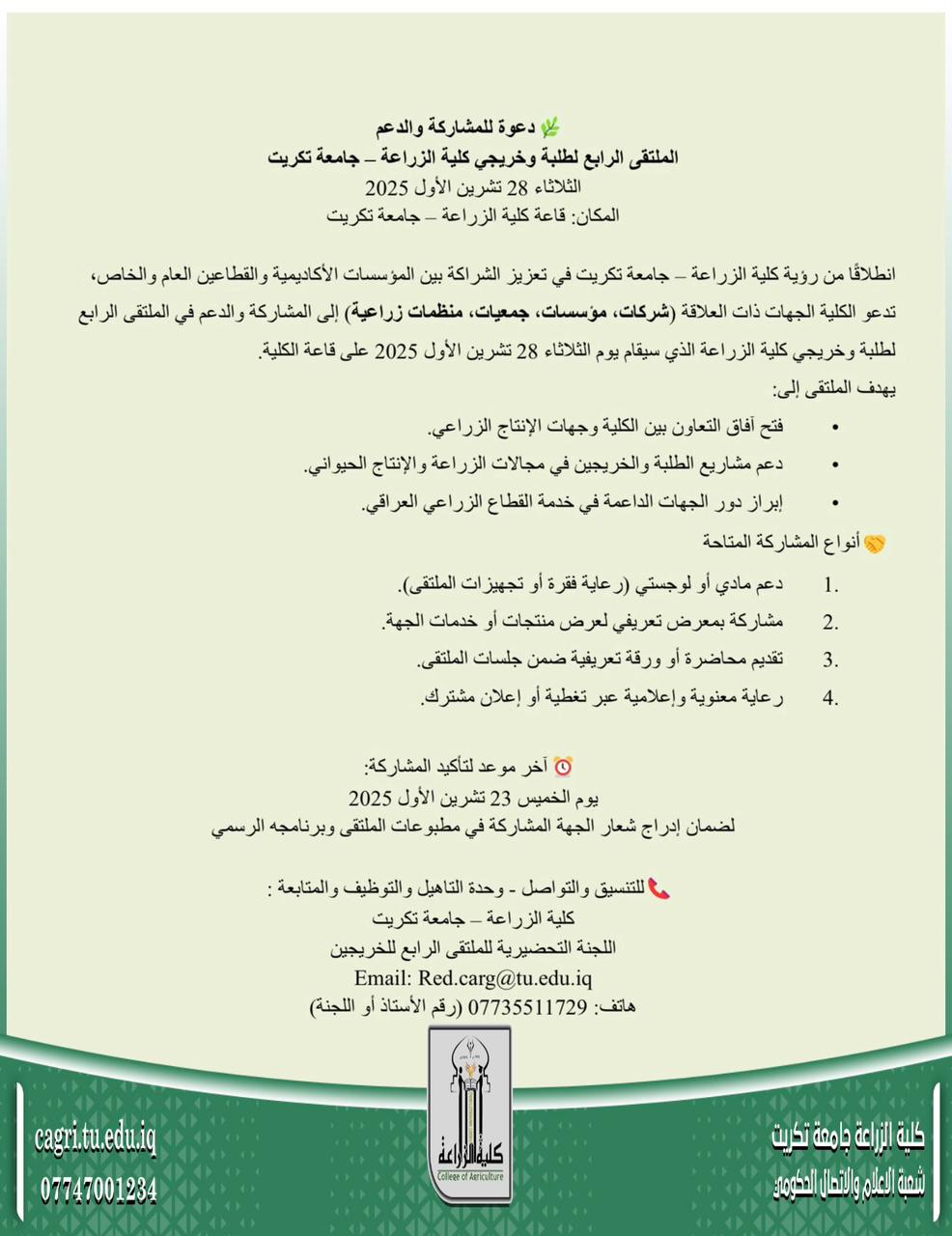 رفد المجتمع بالطاقات والكفاءات العلمية للخريجين وتقديم البحوث الرصينة والاستشارة للفلاحين واصحاب المشاريع الزراعية.