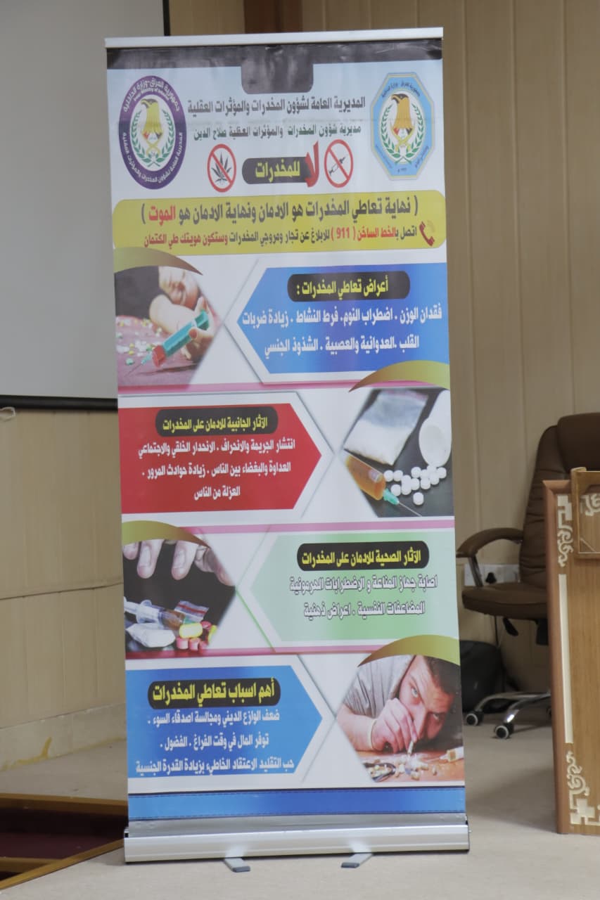 انسجاماً مع توجيهات وزارة التعليم العالي والبحث العلمي/ دائرة البحث والتطوير بشأن تنفيذ برنامج الأسبوع العراقي لمكافحة المخدرات، وبرعاية رئيس جامعة تكريت الأستاذ الدكتور وعد محمود رؤوف، وبإشراف الأستاذ المساعد الدكتور سامي خضر سعيد عميد كلية الزراعة المحترم والأستاذ المساعد الدكتور سياف عبد حسين مدير مركز التعليم المستمر.. أقامت كلية الزراعة - وحدة الإرشاد النفسي والتوجيه التربوي وبالتعاون مع مركز التعليم المستمر
