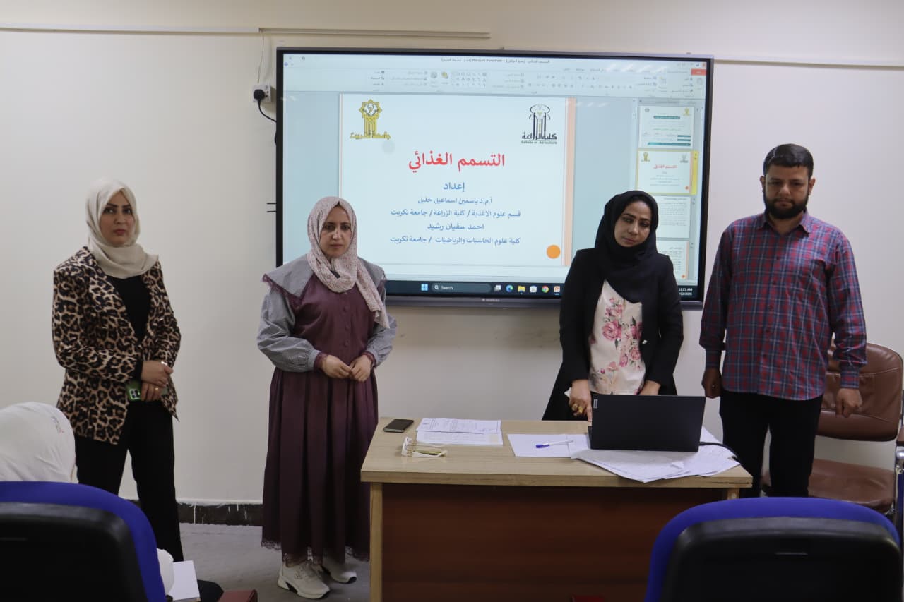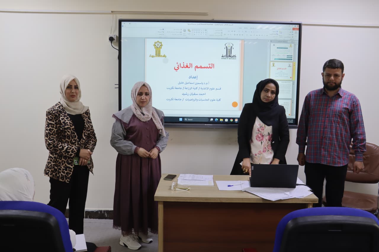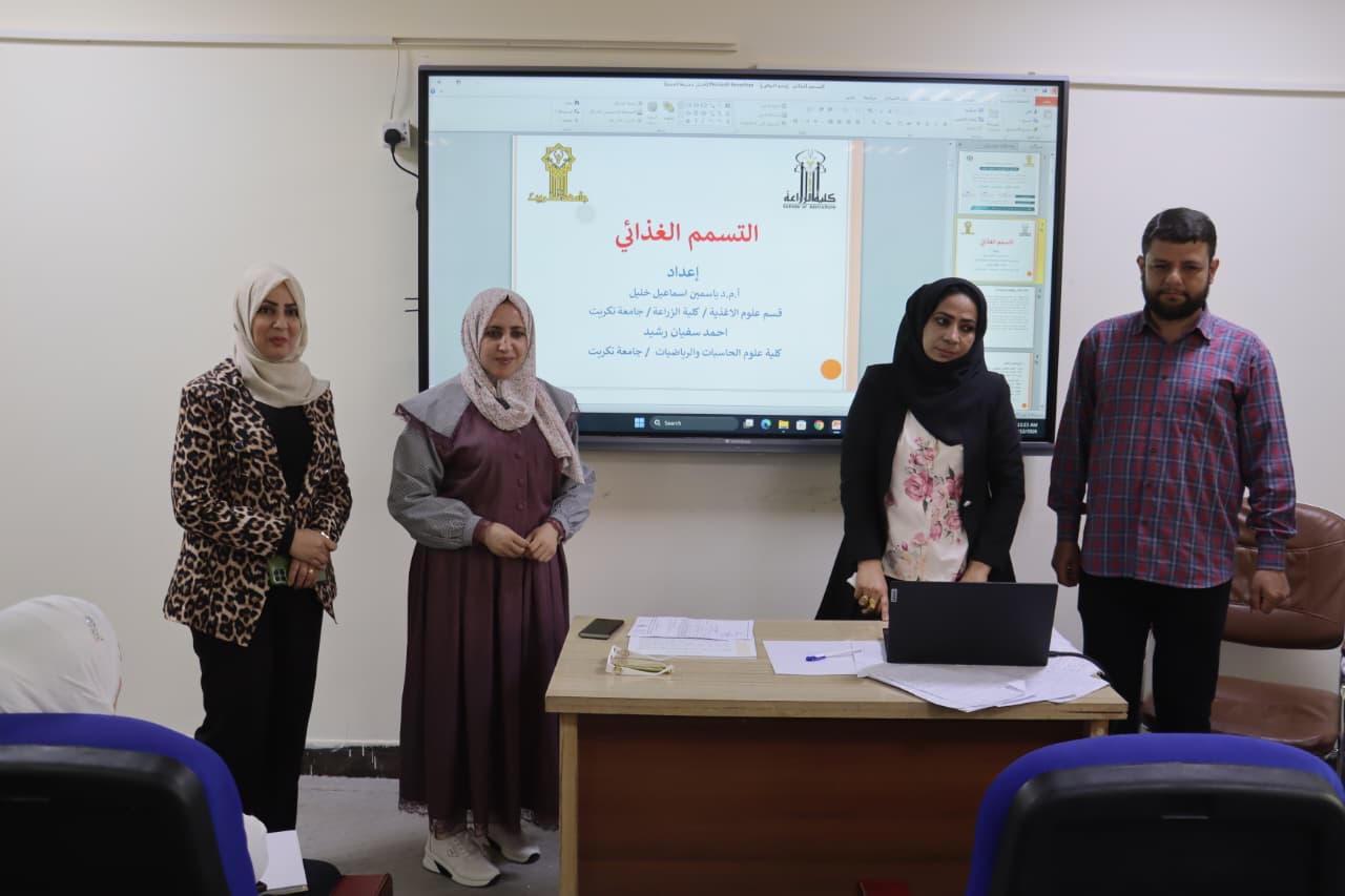 برعاية رئيس جامعة تكريت الأستاذ الدكتور وعد محمود رؤوف، وبإشراف عميد كلية الزراعة الأستاذ المساعد الدكتور سامي خضر سعيد، أقامت كلية الزراعة، بالتعاون مع مركز التعليم المستمر، دورة علمية بعنوان "التسمم الغذائي الميكروبي والكيميائي"، وذلك بإشراف ومتابعة الأستاذ المساعد الدكتور سياف عبد حسين مدير مركز التعليم المستمر، في قاعة قسم علوم الأغذية.