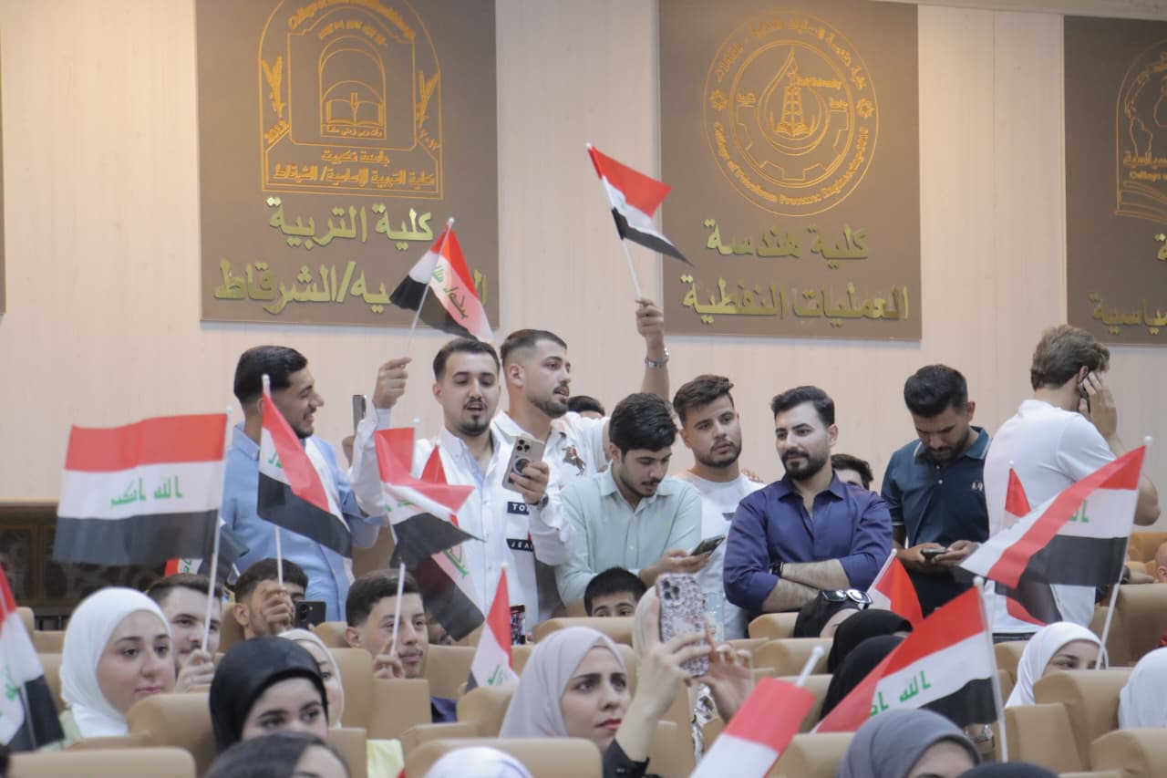 وخلال الاحتفال، عُزف النشيد الوطني العراقي وقرأت سورة الفاتحة على أرواح شهداء العراق، ثم ألقى السيد رئيس الجامعة كلمةً أكد فيها على أهمية هذه المناسبة في ترسيخ قيم الوحدة الوطنية وتعزيز روح المواطنة والمسؤولية بين الشباب.