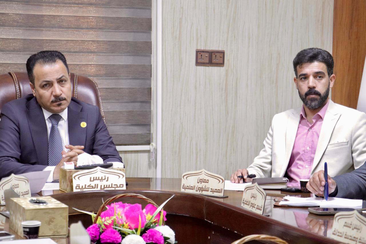 وناقش المجلس بعض اللجان الخاصة بمناقشات طلبة الدراسات العليا وعناوين عدد من أطاريح الدكتوراه والماجستير واتفق على ضرورة تشكيل لجنة خاصة باعداد دراسة للمشاريع التي يمكن تطبيقها عبر الذكاء الصناعي الخاص بالزراعة الحديثة.