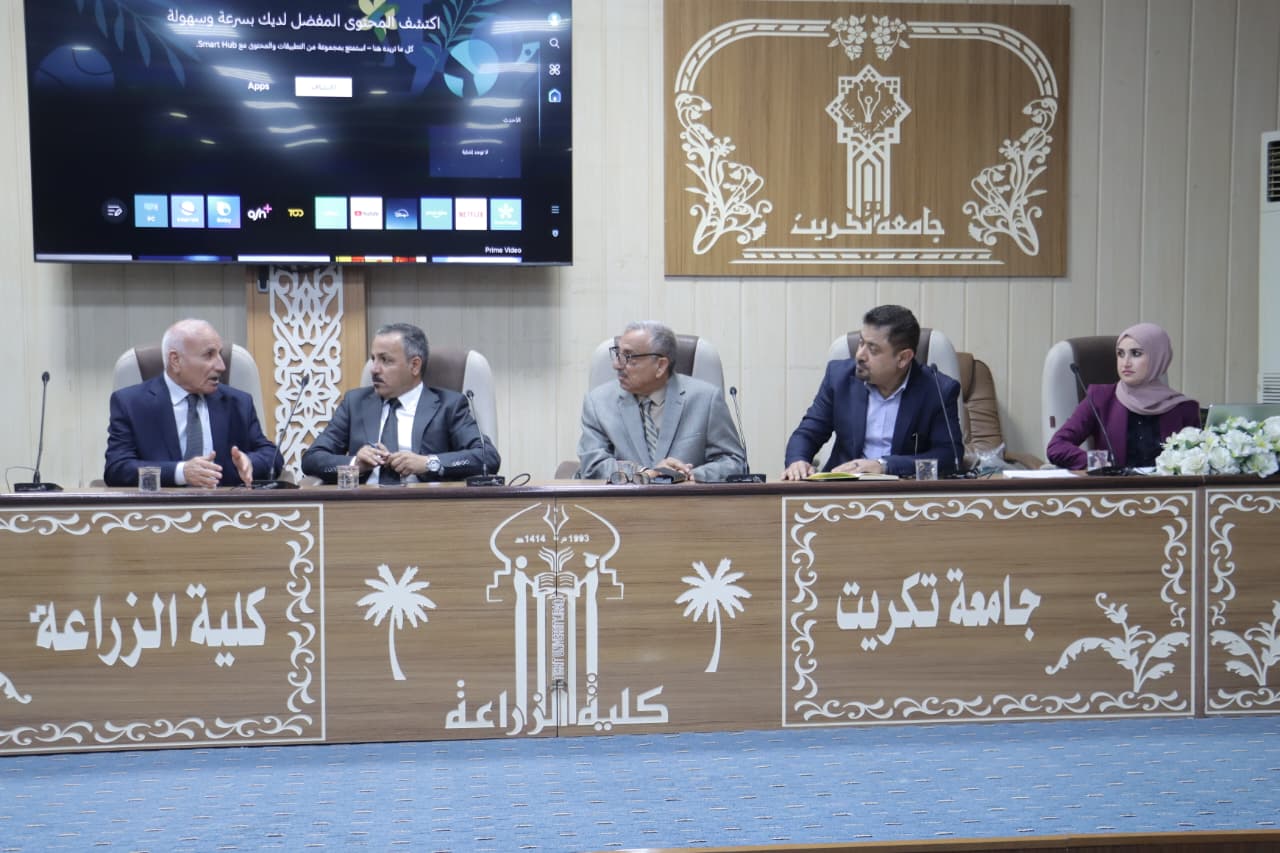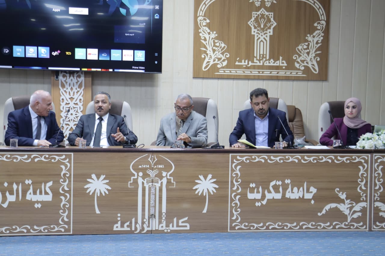ترأس عميد كلية الزراعة في جامعة تكريت الأستاذ المساعد الدكتور سامي خضر سعيد اجتماعاً لقسم الاقتصاد والإرشاد الزراعي، بحضور رئيس القسم وعدد من التدريسيين، وذلك لمناقشة عدد من القضايا العلمية والإدارية المتعلقة بالدراسات العليا.
