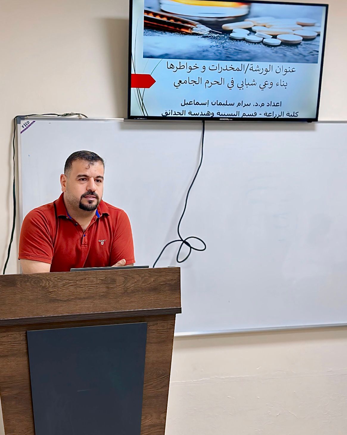 ضمن الاسبوع العراقي لمكافحة المخدرات.. نظّم قسم البستنة في كلية الزراعة بجامعة تكريت ورشة توعوية بعنوان "المخدرات وأخطارها – بناء وعي شبابي في الحرم الجامعي" ضمن فعاليات الأسبوع العراقي لمكافحة المخدرات، وبحضور عدد من التدريسيين والطلبة.