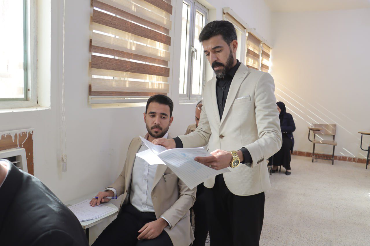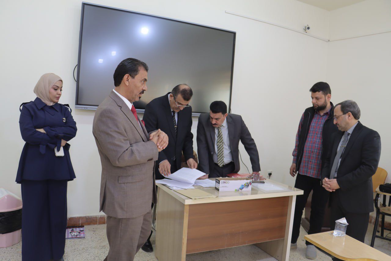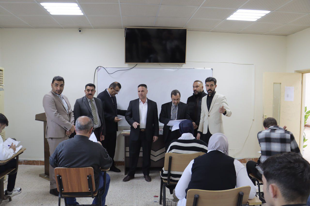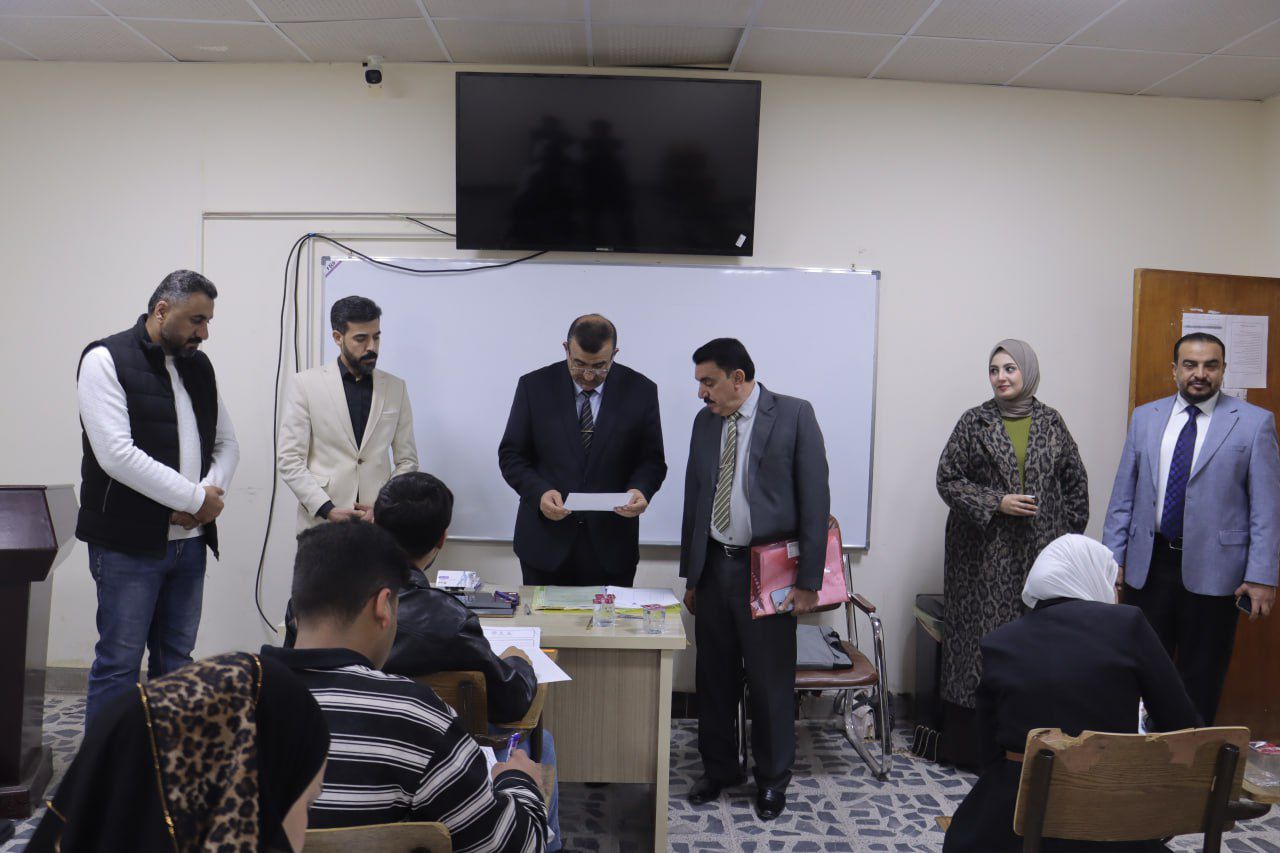 ورافق اللجنة خلال جولتها المعاون العلمي للعميد الأستاذ المساعد وسام حمد حسين، حيث جرى تفقد القاعات الامتحانية والوقوف على طبيعة الإجراءات التنظيمية المتبعة، ومدى الالتزام بالتعليمات الوزارية الخاصة بإدارة الامتحانات.