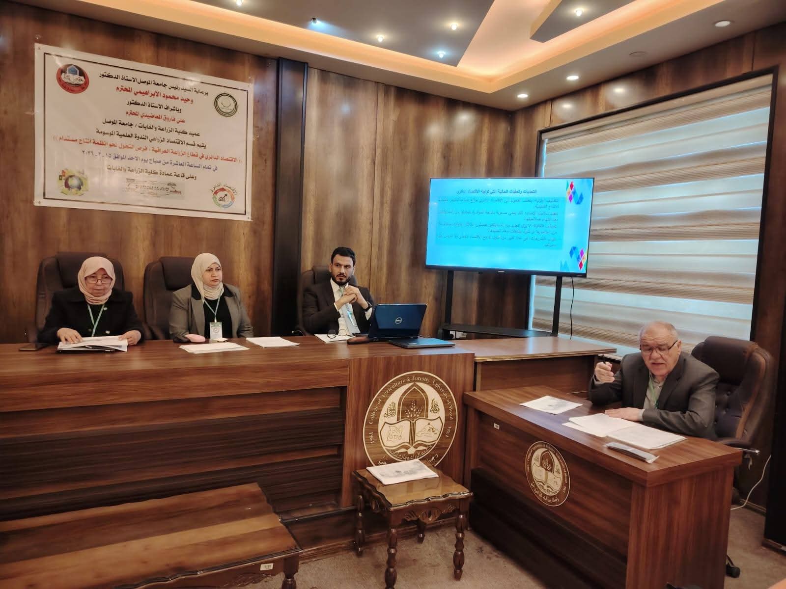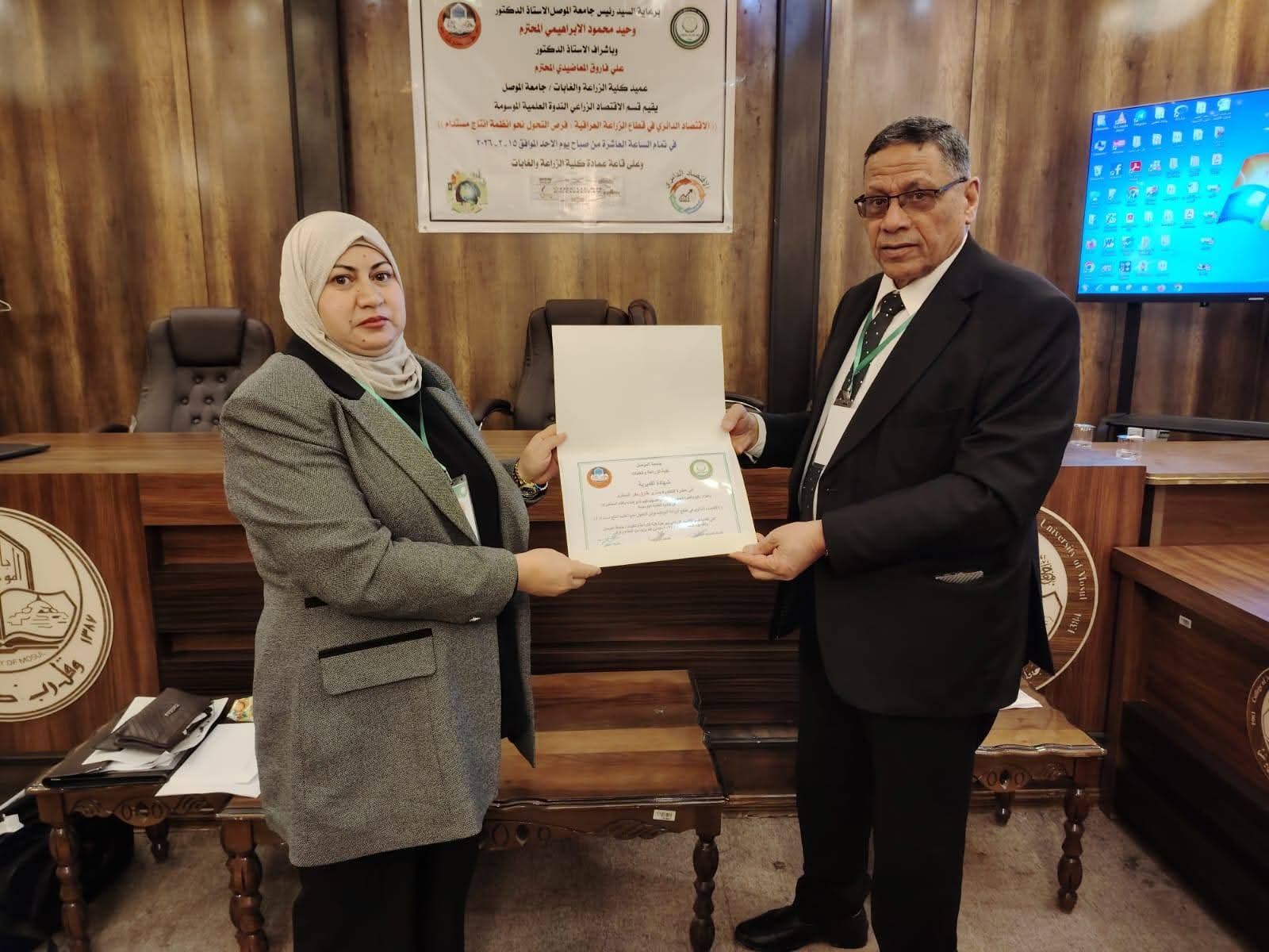 من مبدأ التعاون العلمي بين الجامعات.. شارك التدريسيان في قسم الاقتصاد والإرشاد الزراعي - كلية الزراعة جامعة تكريت وهما كل من الاستاذ الدكتور يسرى طارق بكر والمدرس الدكتور عماد مزاحم محمد في ندوة علمية أقيمت في رحاب جامعة الموصل كلية الزراعة - قسم الاقتصاد والإرشاد الزاعي بعنوان (الاقتصاد الدائري في قطاع الزراعة العراقية. فرص التحول نحو أنظمة إنتاج مستدام)