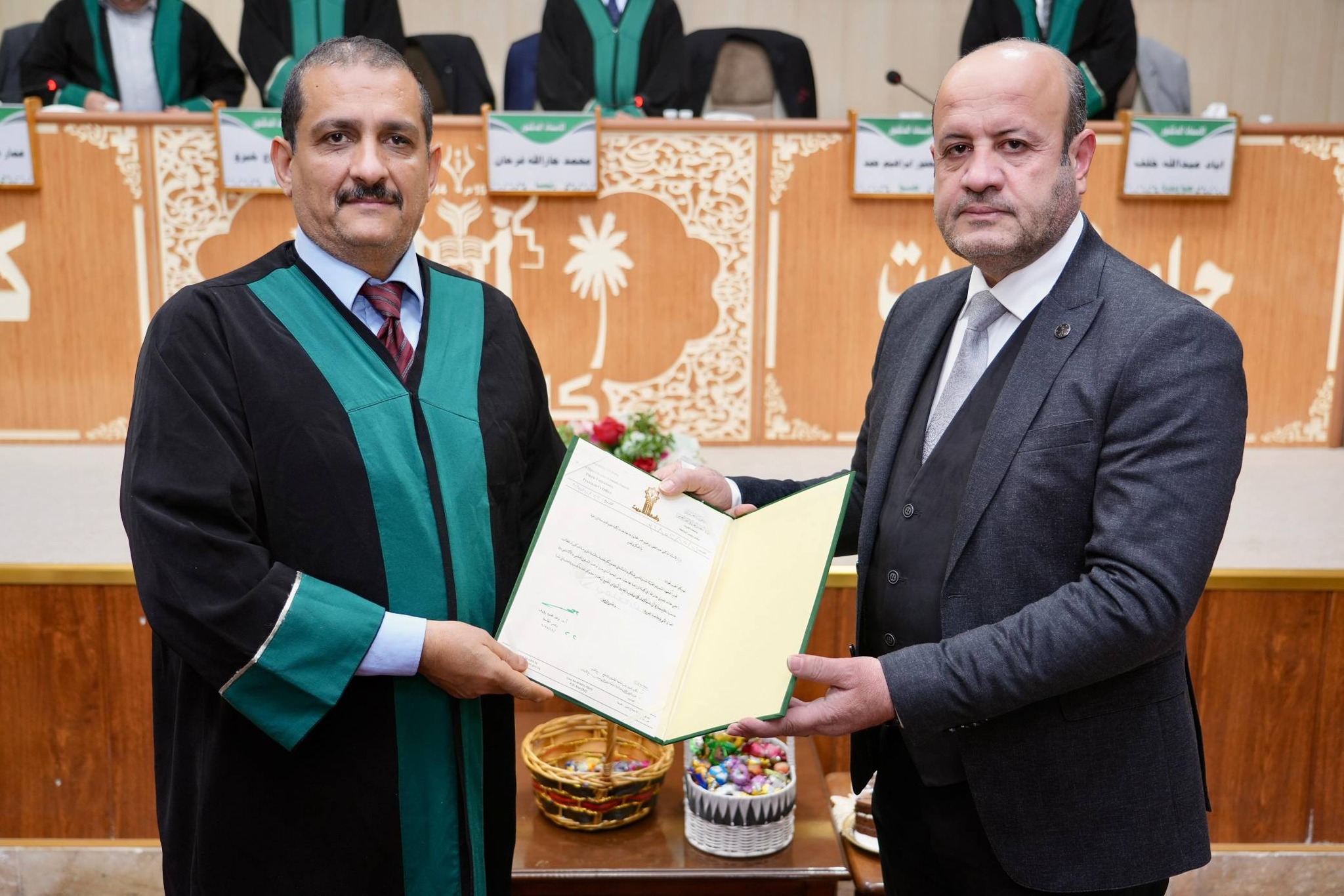 نوقشت في قسم التربة والموارد المائية بكلية الزراعة - جامعة تكريت رسالة ماجستير للطالب أسامة صبحي احمد بعنوان (تقييم تأثير الري بالتنقيط الشريطي المتناوب و الكمبوست في بعض خصائص التربة الجبسية ونمو وحاصل الذرة الصفراء)
