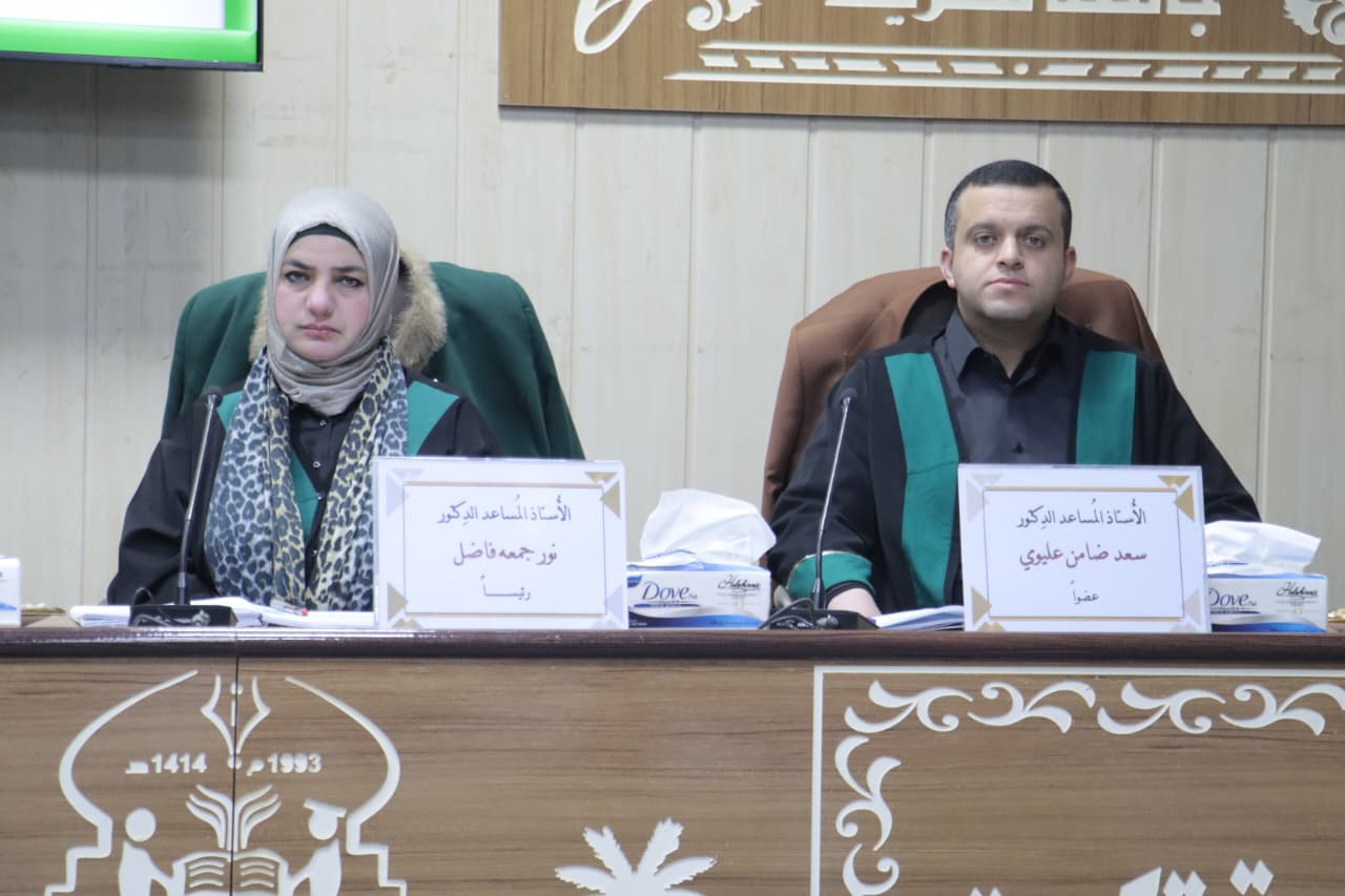وبعد المناقشة العلمية المستفيضة، قررت اللجنة قبول الرسالة، متمنيةً للطالب دوام التوفيق والنجاح في مسيرته العلمية.