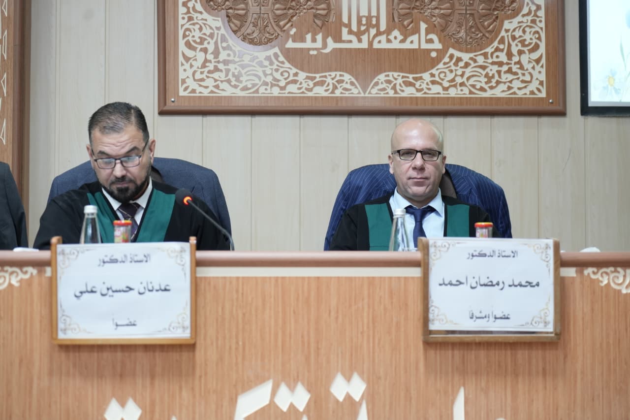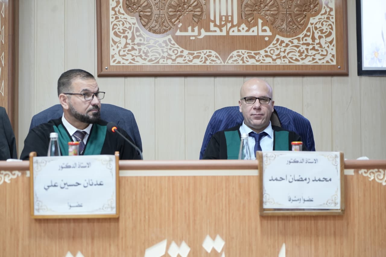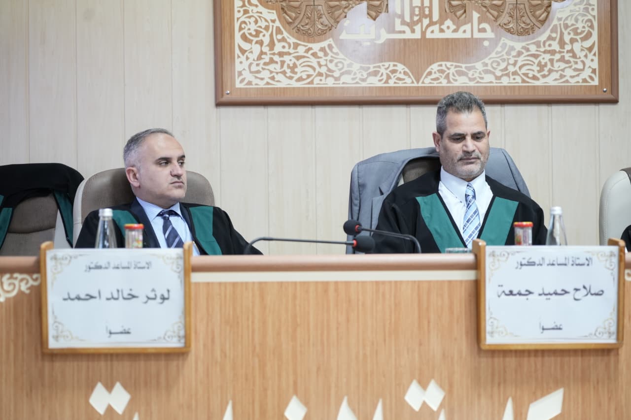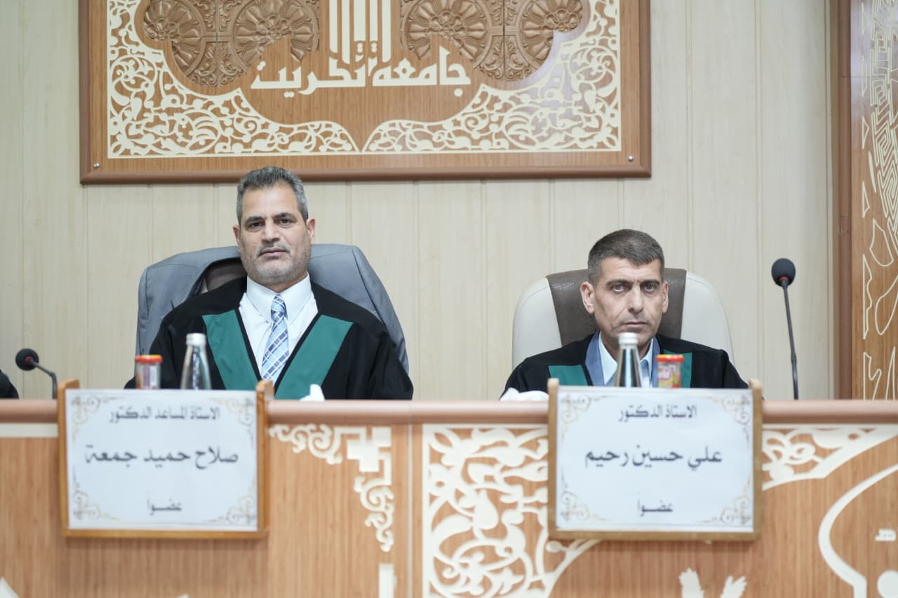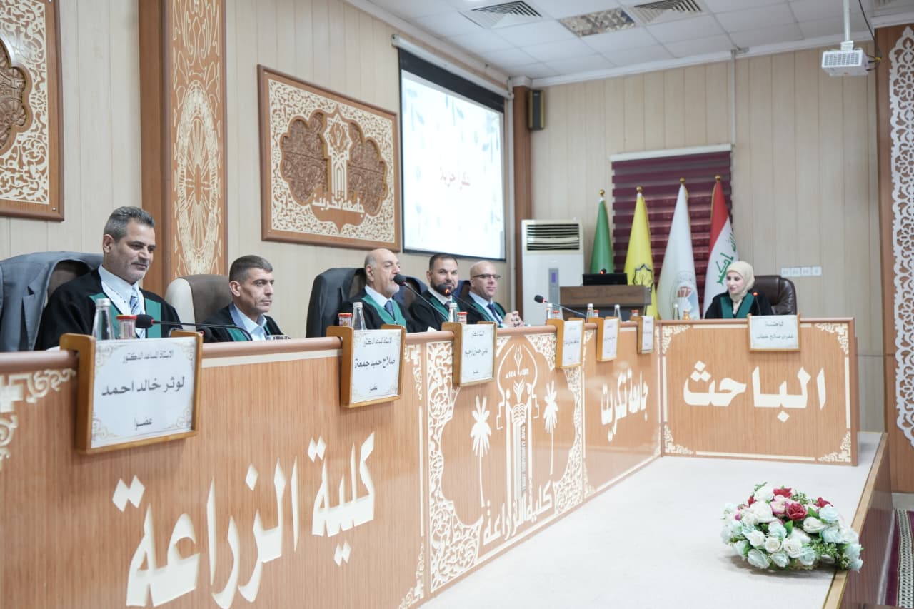 وجرت المناقشة على قاعة الشهيد الدكتور إبراهيم البدن علي في بناية البحوث بكلية الزراعة، يوم الأحد الموافق 29/3/2026، بحضور عدد من التدريسيين والباحثين وطلبة الدراسات العليا.