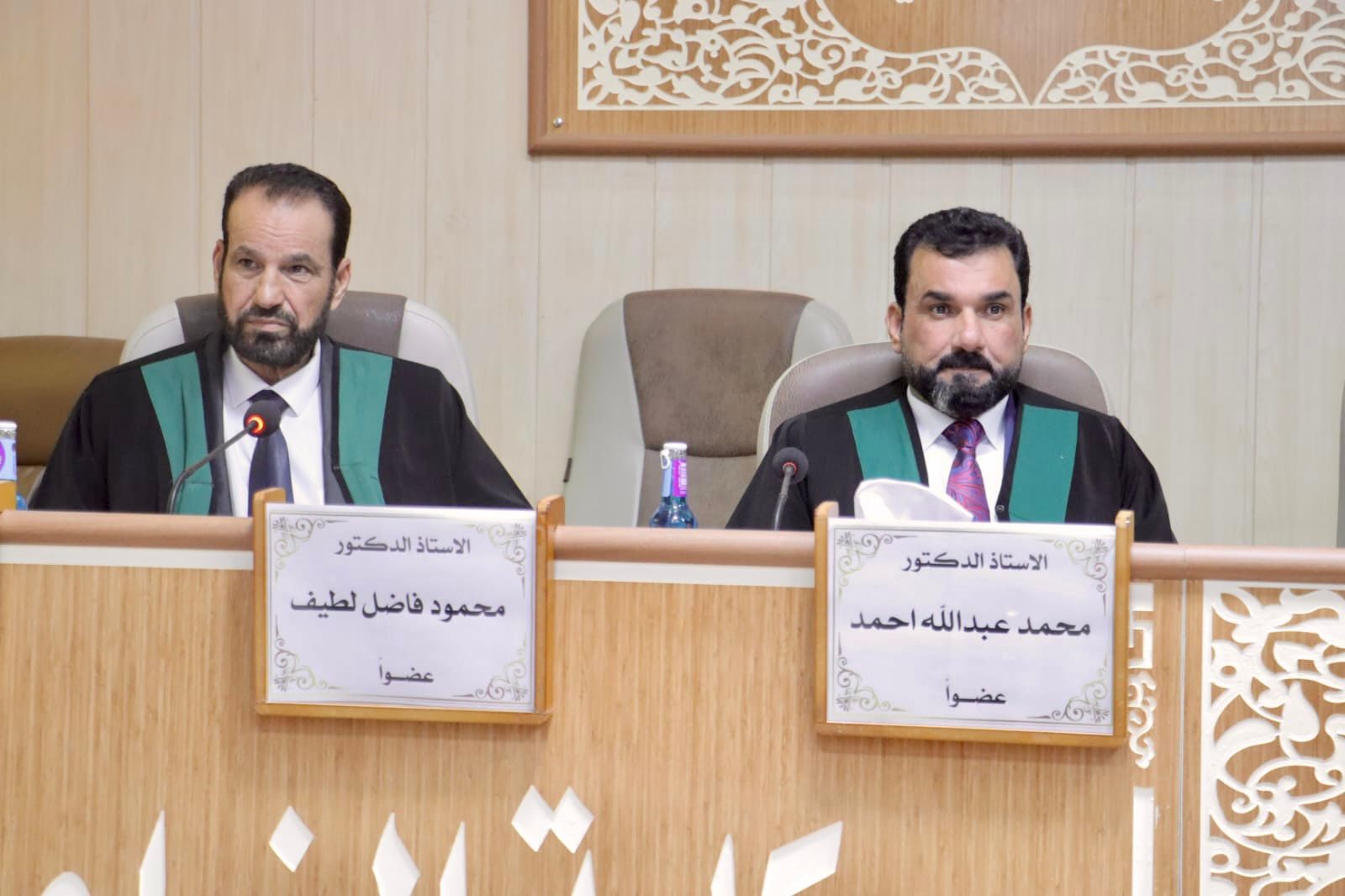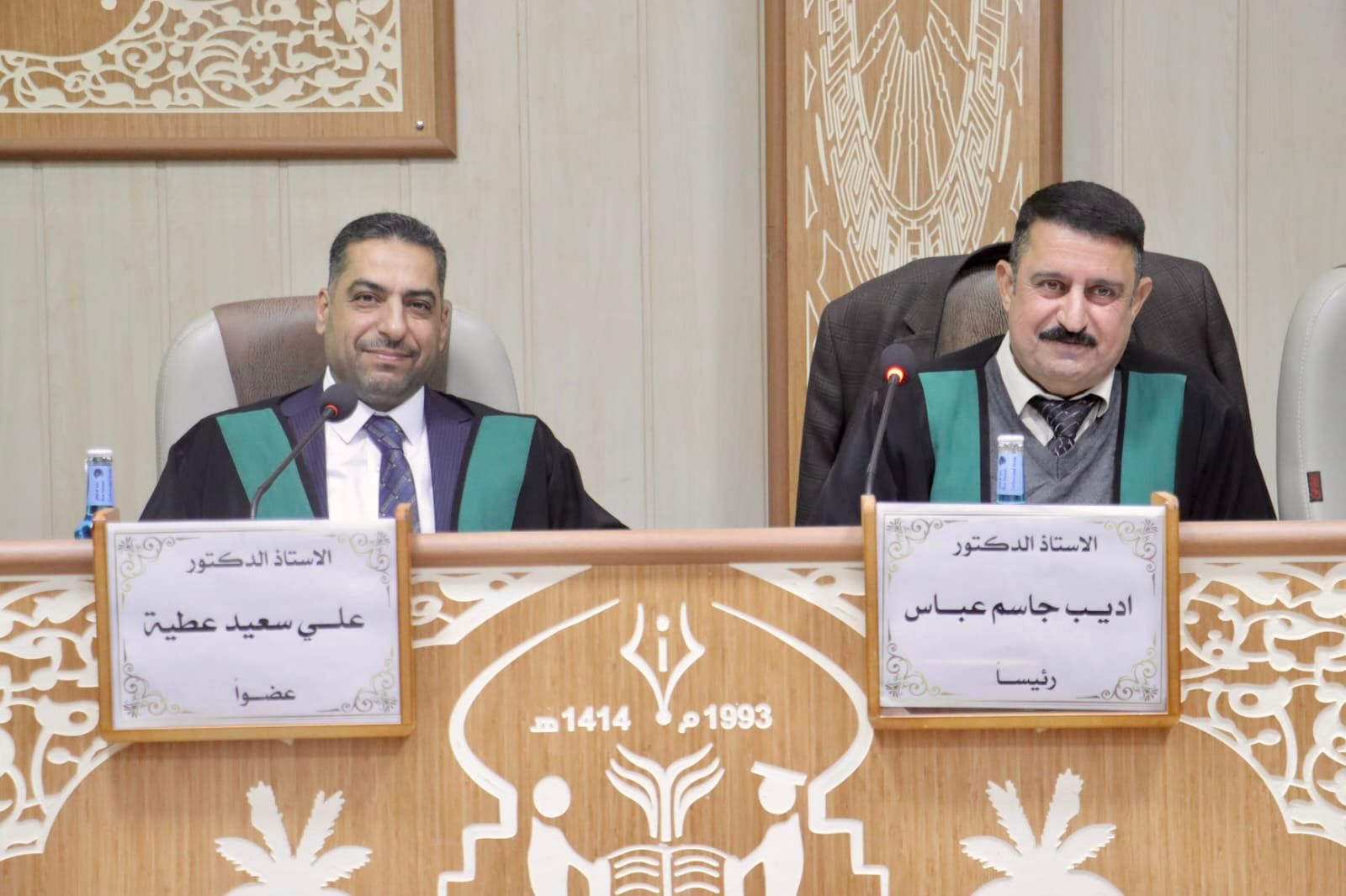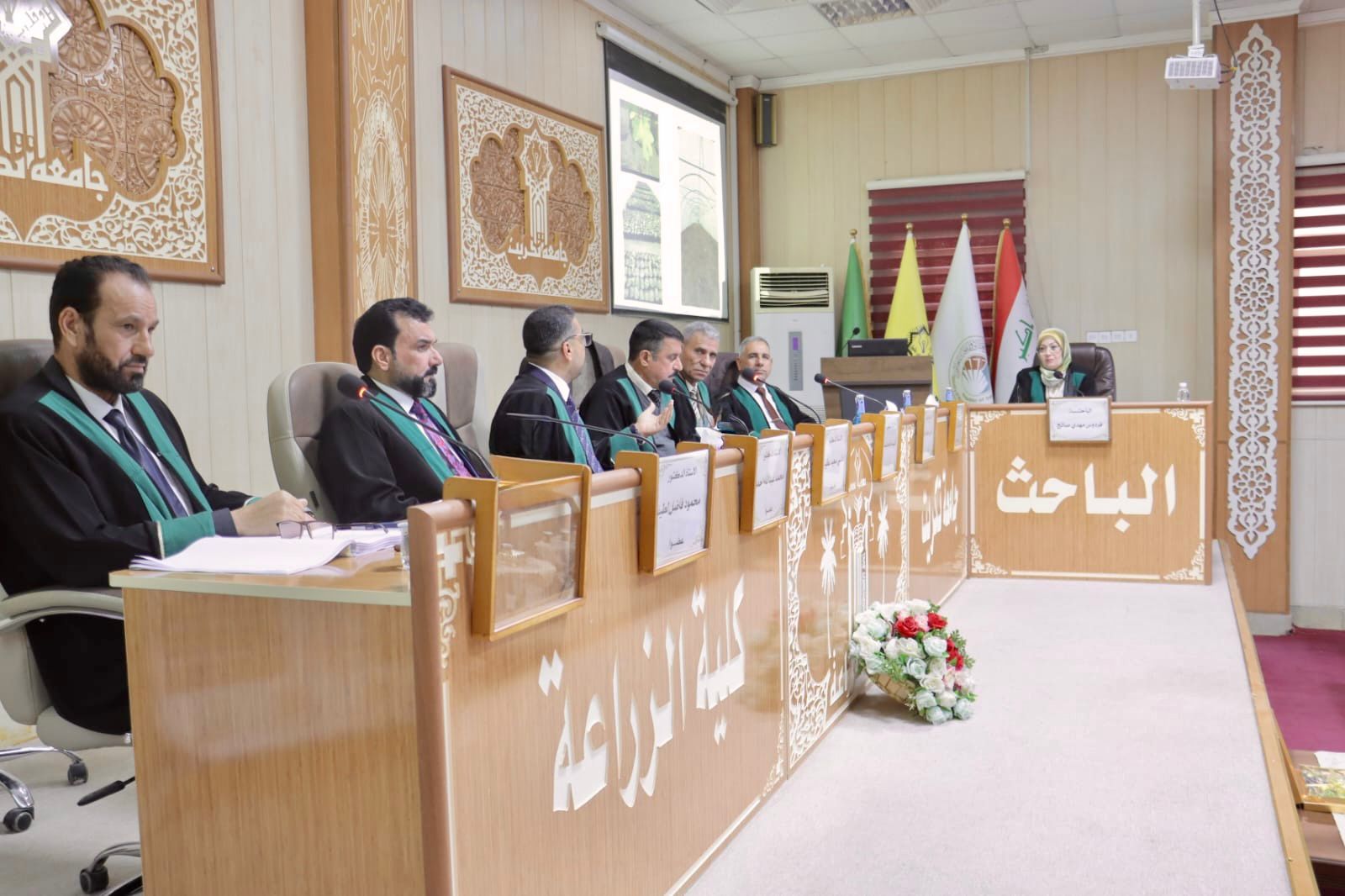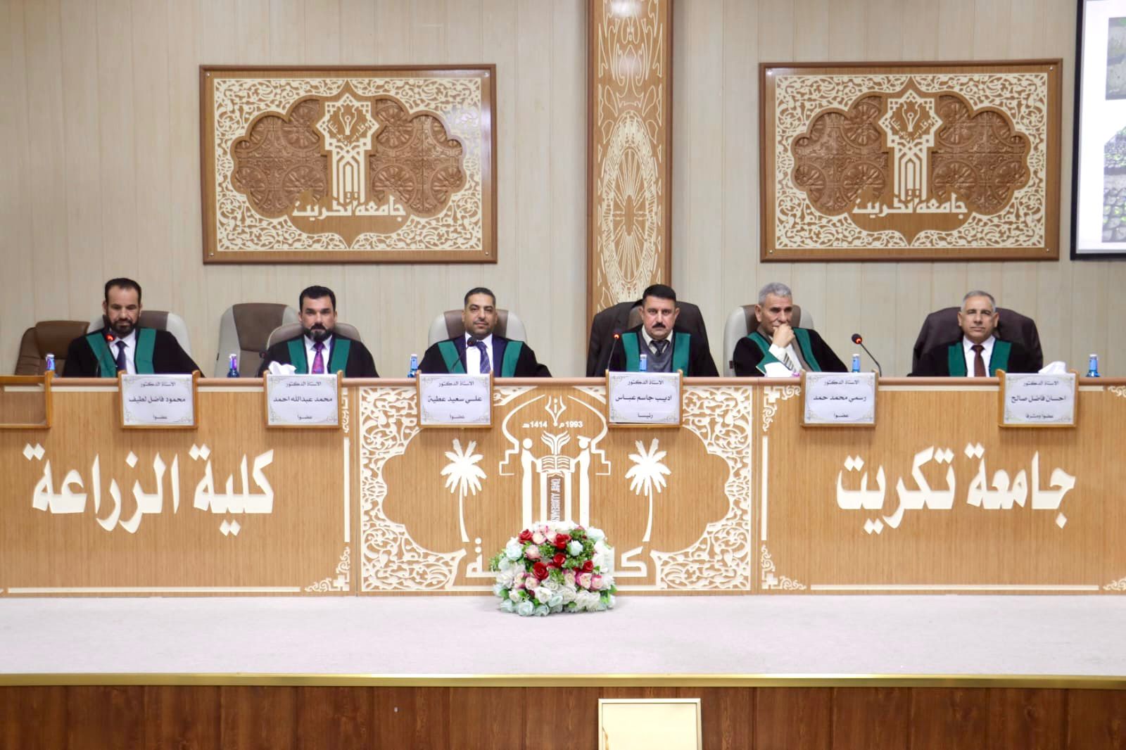 وترأس لجنة المناقشة الأستاذ الدكتور أديب جاسم عباس من جامعة تكريت / كلية الزراعة، وعضوية كل من: