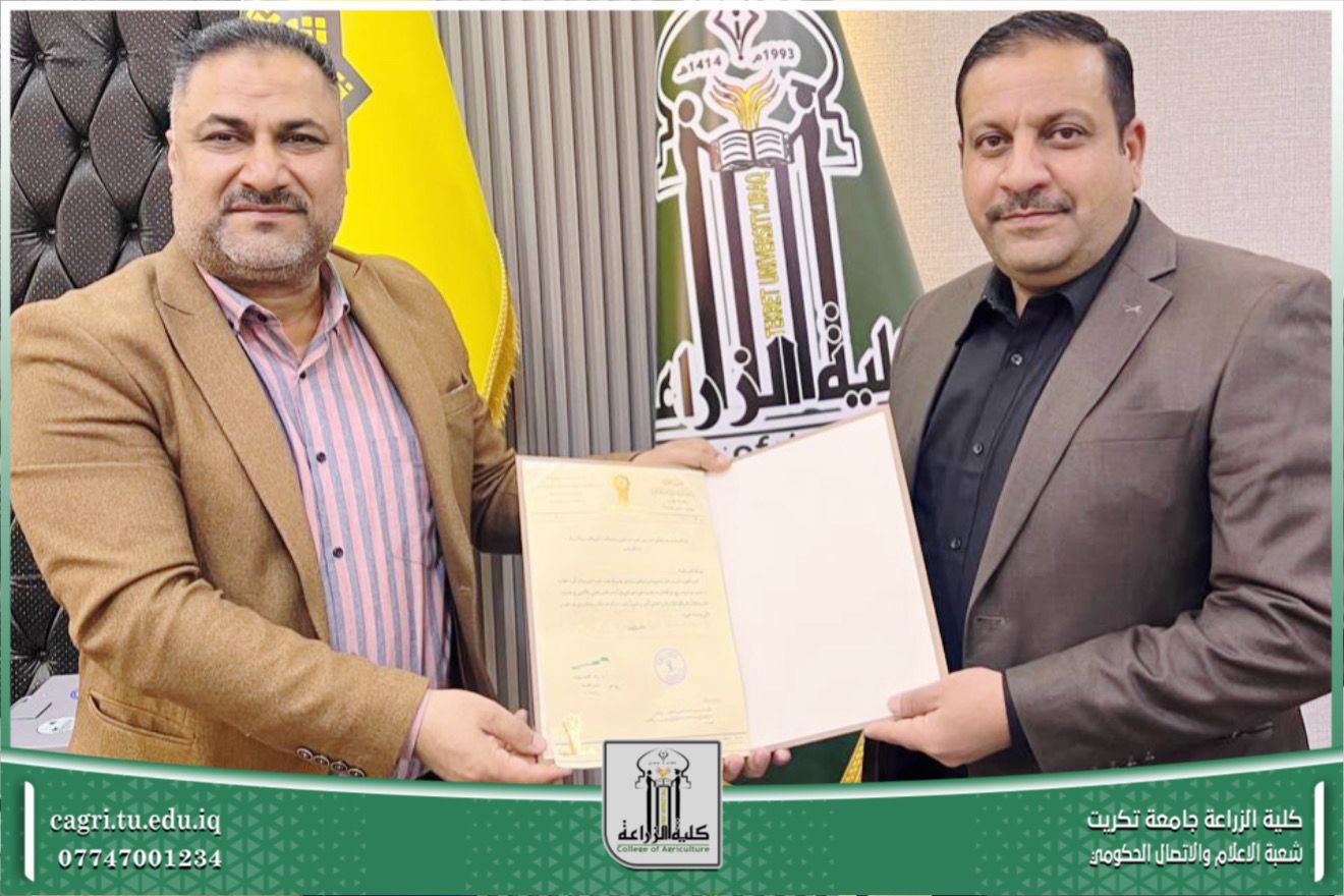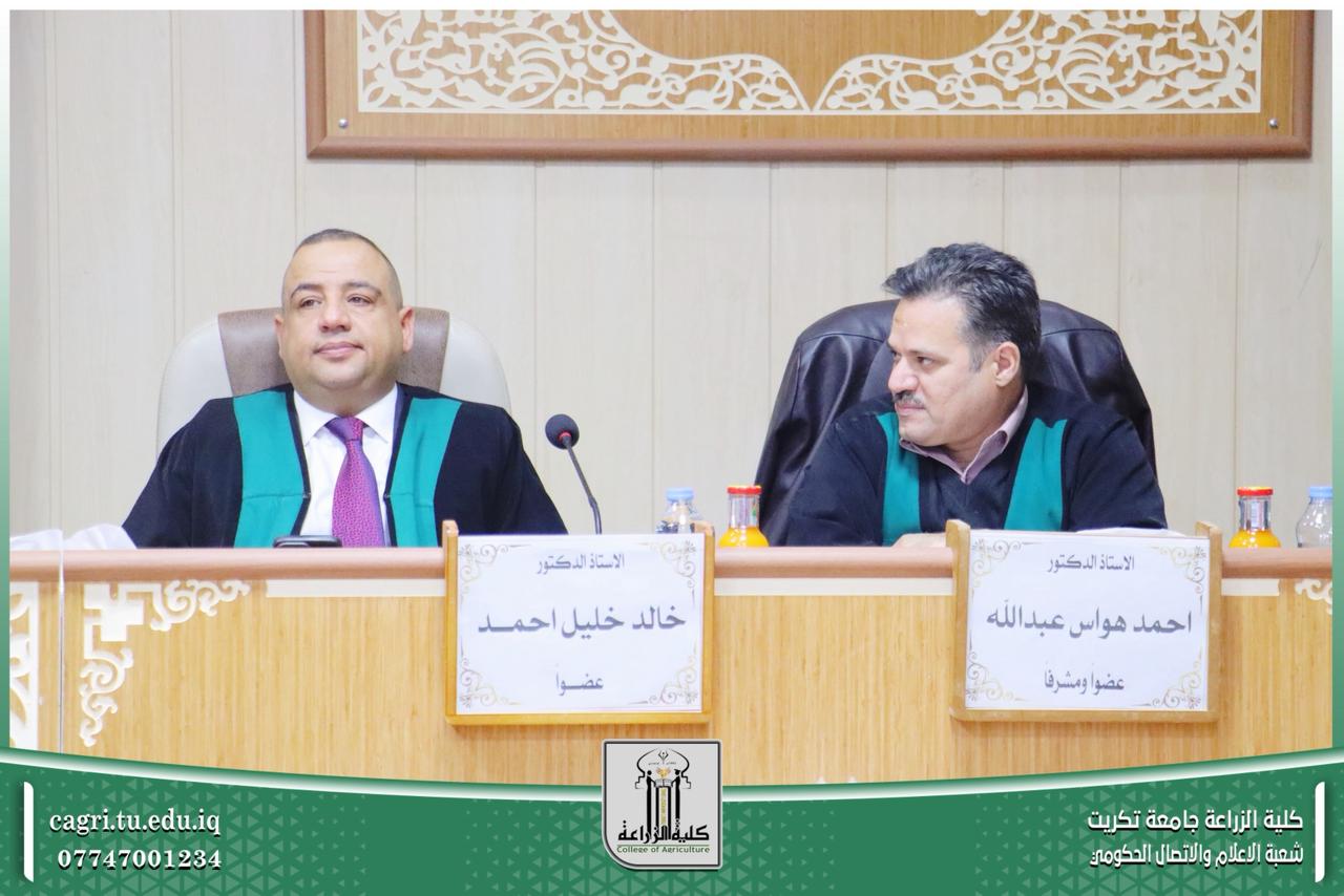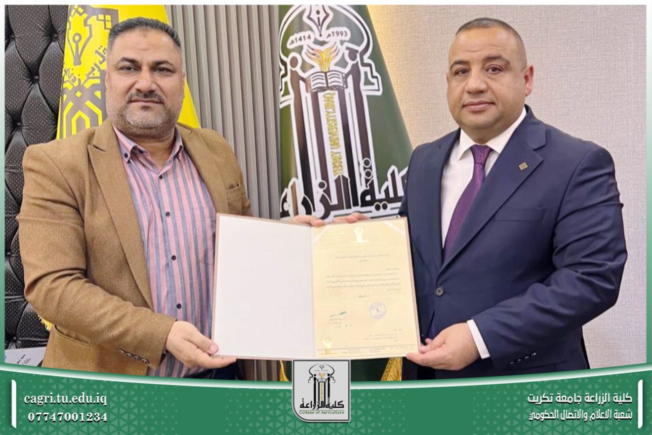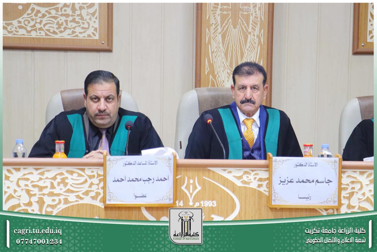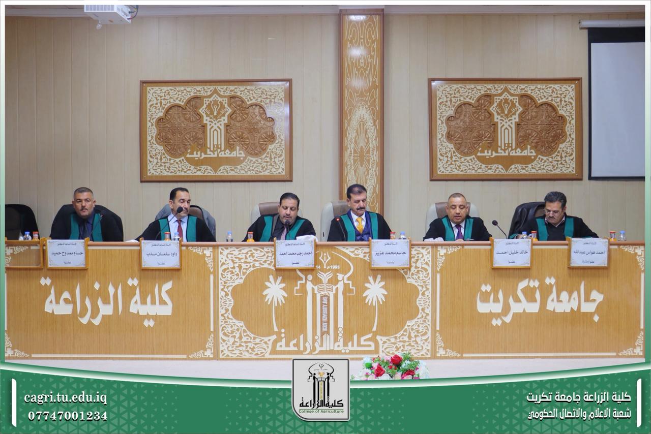 نوقشت في قسم المحاصيل الحقلية بكلية الزراعة – جامعة تكريت، أطروحة دكتوراه للطالبة ساهرة رحيم شريف، والموسومة «غربلة تراكيب وراثية من حنطة الخبز جزيئياً ووراثياً ومظهرياً في مواعيد زراعية مختلفة».