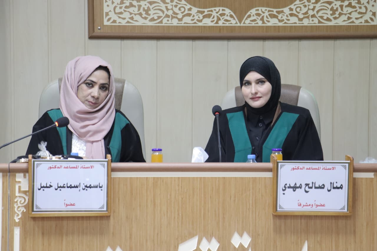 نوقشت في قسم علوم الأغذية رسالة ماجستير للطالبة سارة سمير داود بعنوان (التخليق الحيوي لجسيمات التيتانيوم والزنك النانوية باستعمال اليانسون النجمي وتقييم فاعليتها التثبيطية ضد بعض أنواع الميكروبات المسببة للتسمم الغذائي)